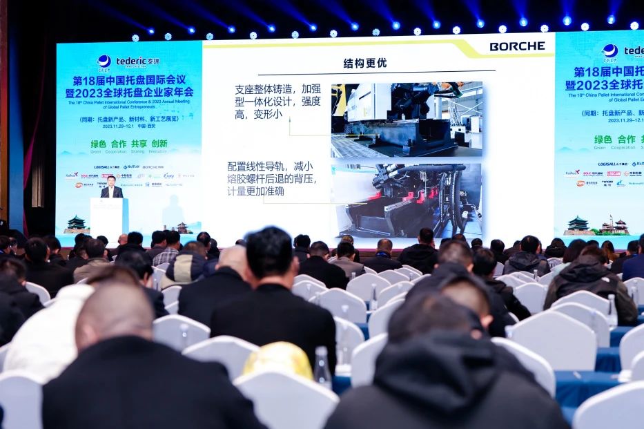11月29日至12月1日,由中国物流与采购联合会主办的第18届中国托盘国际会议暨2023全球托盘企业家年会在西安隆重举行。会议主题为“绿色,合作,共享,创新”,汇集了国内外托盘相关行业协会、托盘生产及运营企业、原材料供应商、设备生产企业、技术装备企业、物流企业、商贸企业、科研院所等国内外超过30个国家和地区的行业精英。