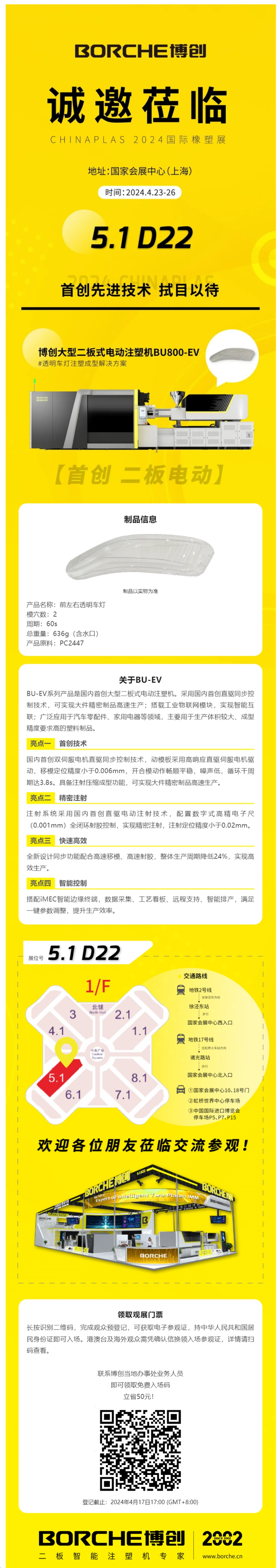 CHINAPLAS 2024|博创将展示国内首创大型二板式电动注塑机