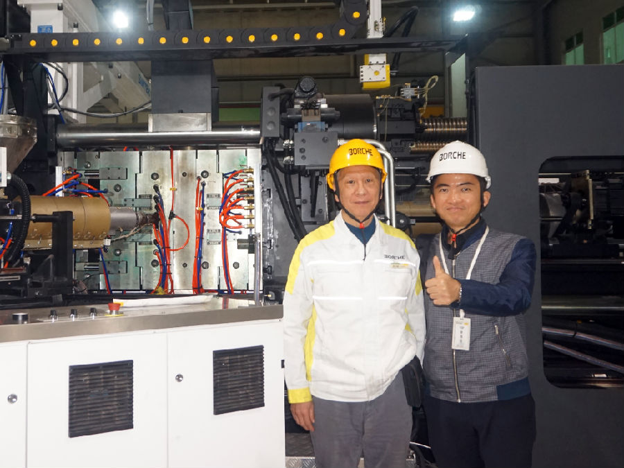博创不是单纯的售卖多色机器产品,在多色机的服务方面,博创标榜以“服务作先锋,技术为后盾”,打造共塑一站式服务。黄总介绍说,这个服务从“人、模、机、料、工艺”五要素出发,包括了产品设计、塑料选配、模具设计、机械制造、设定工艺、人员培训、系统交货这七个重要环节。在新产品开发的阶段,博创为客户提供专业意见,使产品设计能配合多色共塑工艺,节省成本,提高质量。博创与各大TPE弹性体供应商已建立联系,能提供及调配不同要求的塑料,帮助客户选配合适的材料。博创与多家专业模具厂合作,制造精密双色、三色模具,也可指导客户自行制造模具。博创生产一系列双色机,可选配不同副射台及顶射台,满足广大客户的要求。在试制产品时,除了修改模具以外,更按实际操作过程,设定最佳工艺条件,达到最高效率及质量。在调试阶段,博创邀请客户安排技术人员到厂进行培训,熟悉机器的操作,了解模具的特性,使客户日后能有效地运作整套设施,迄今已总共约有1000多人次接受了培训。博创让客户获得合作样板,并熟悉生产的工艺,然后整套设备交付运输,交货后派专业人员组装设备,并现场操作,使设备第一时间进入生产状态。